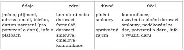 3) Údaje, které jsou v KCF zpracovávány a uchovávány: